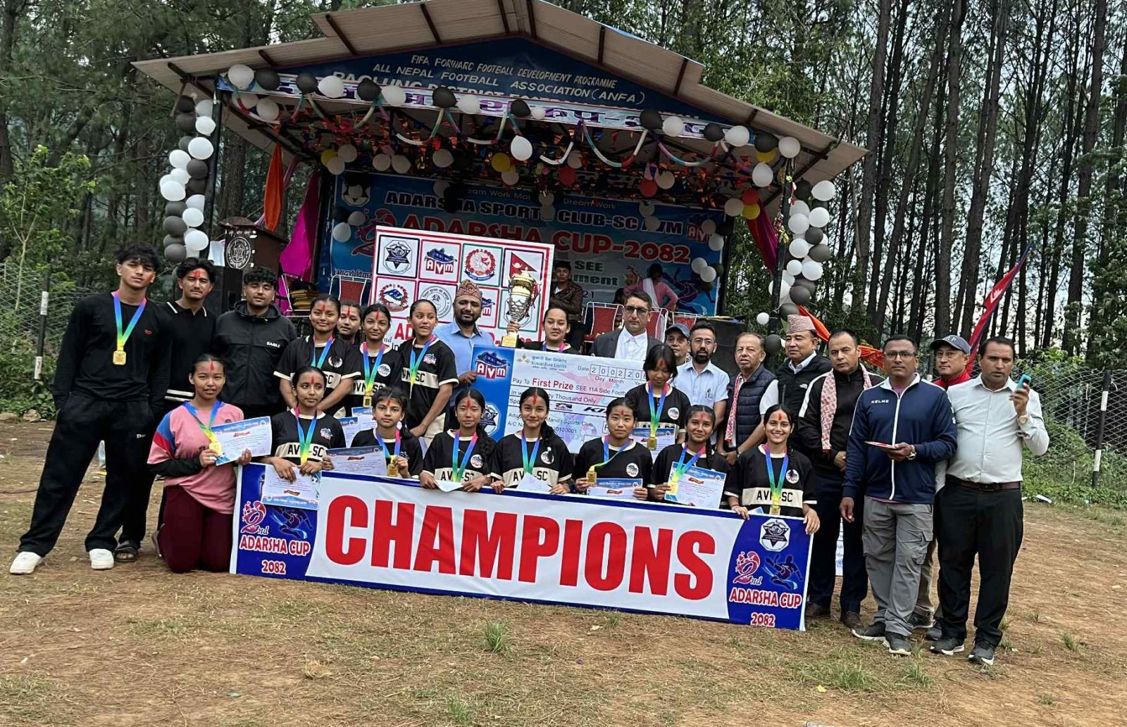 आदर्श स्पोर्टस क्लब बागलुङको आयोजनामा बाङ्गेचौर खेलमैदानमा मंगलबार भएको प्रतियोगिताको फाइनल प्रतिस्पर्धामा छात्रतर्फ डिफेन्डिङ च्याम्पियन आदर्श विद्यामन्दिर माध्यमिक विद्यालयलाई ०–१ गोलअन्तरले पराजित गर्दै चिल्ड्रेन लाइफले उपाधि जितेको हो ।