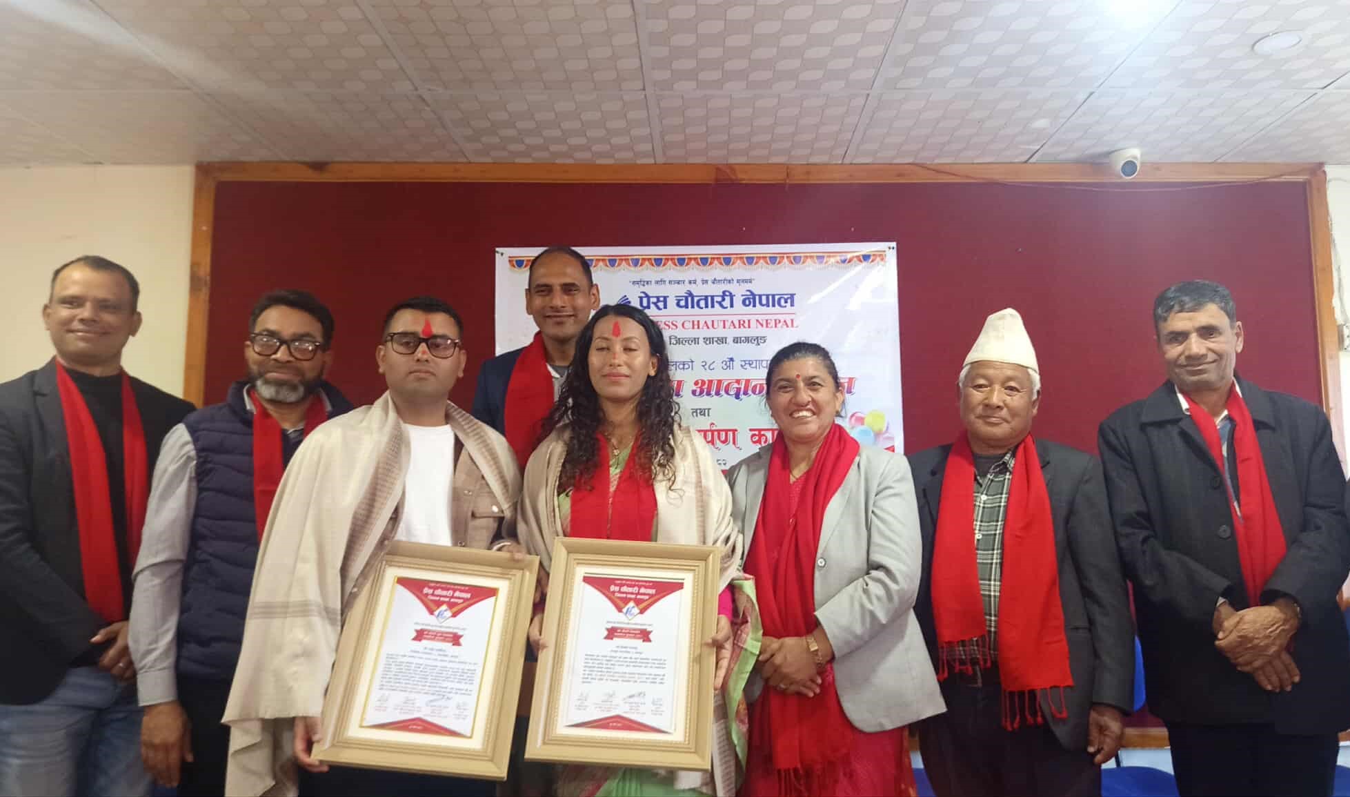 बागलुङ, २२ मााघ । प्रेस चौतारी नेपालको २८ औँ स्थापनाको अवसरमा बागलुङक दूई जना पत्रकार सम्मानित भएका छन् । प्रेस चौतारी नेपाल जिल्ला शाखा बागलुङले युवा क्रियाशिल पत्रकारबाट अर्जुन कार्की र प्रेस चौतारी पुरस्कारबाट सिर्जना पन्त सम्मानित भएका हुन् ।